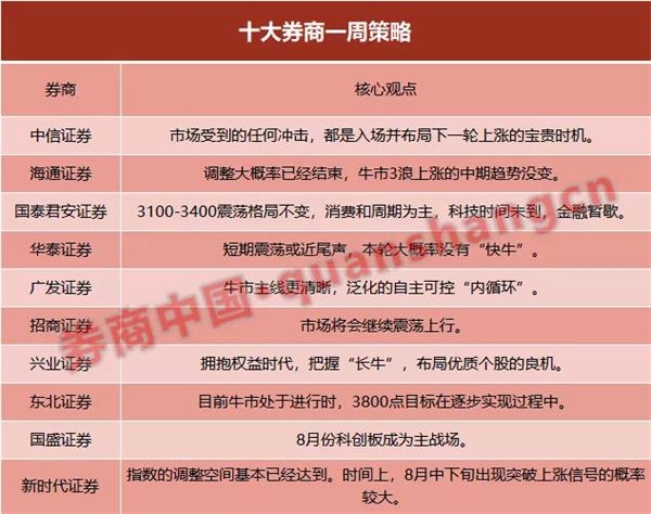 原标题:【十大券商一周策略】3800点目标实现中!短期震荡接近尾声 再次上涨信号或在8月中下旬密集出现